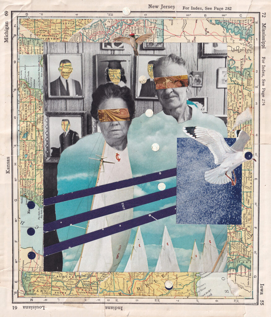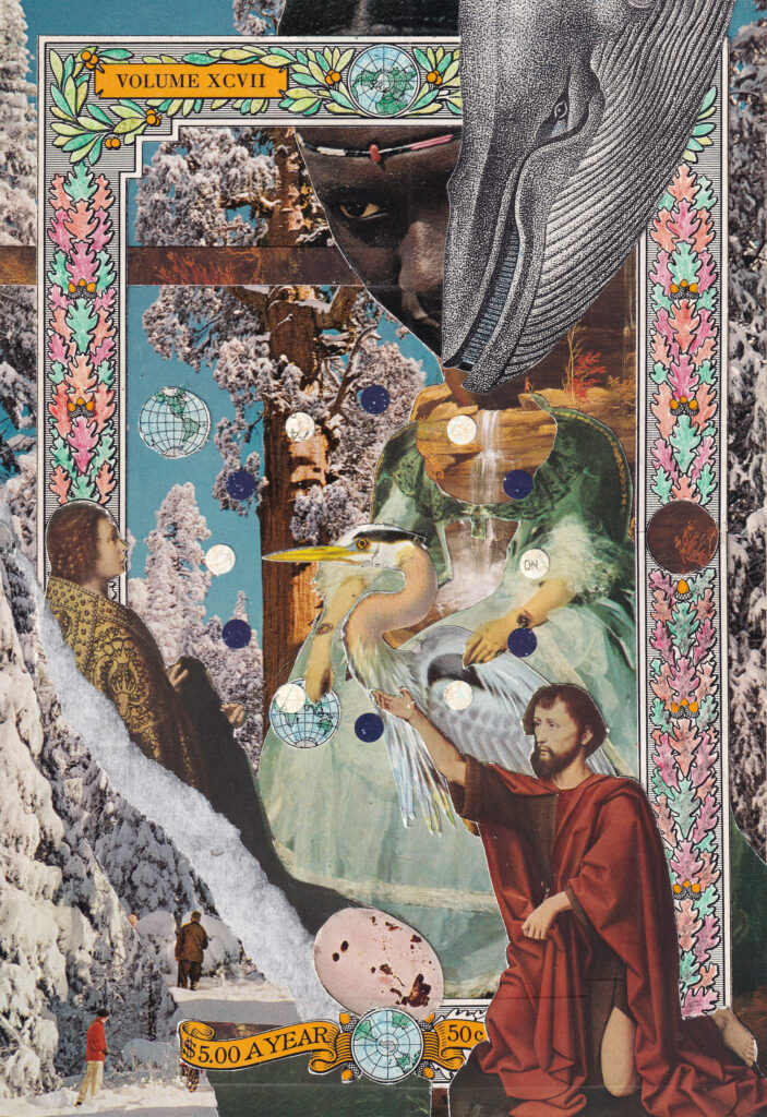 Some Good News Collages created during the period 2022-2025 No. 322 The Feeling is Mutual No. 327 You Shall Get Heron Time No. 329 Where Sea Gull’s Eye Go No. 330 Justice No. 332 Chicken